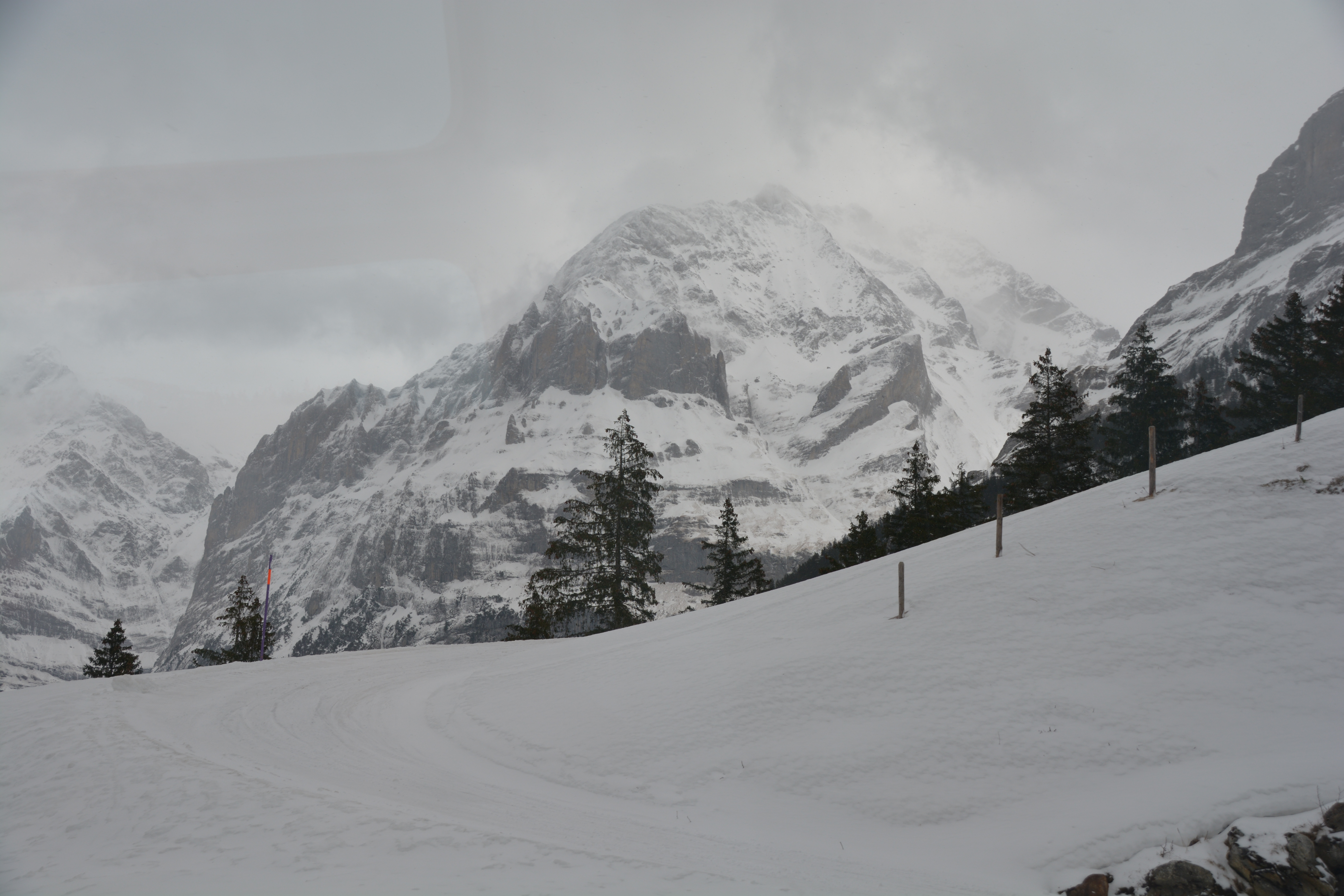 Eating at the ski resort was a rather chilly event but the potatoes served with the sausage were delicate and the shaved radish (European) were delicious. We had hoped to see the Eiger Mountain and enjoy a gondola ride up to the higher mountains but the weather allowed us only the slightest of views through the heavy snow. The ride on the Lauterbrunnen Grindelwald Grund was panoramic with skiers climbing aboard at various stops to go to higher runs.