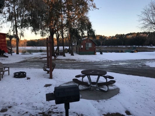 So much for the warmth and beauty of The South and the hospitality. We saw the last of the snow on the side of the road well into Georgia and waved it off as a once in a lifetime experience!