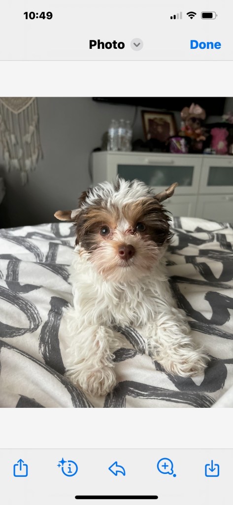 The breeder called several days later and said she had located a Parti Yorkie. I had no idea what that was, so she sent a picture.